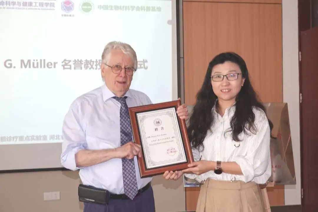 学院党委书记张金为Müller教授颁发永乐高荣誉教授证书,并表示欢迎。