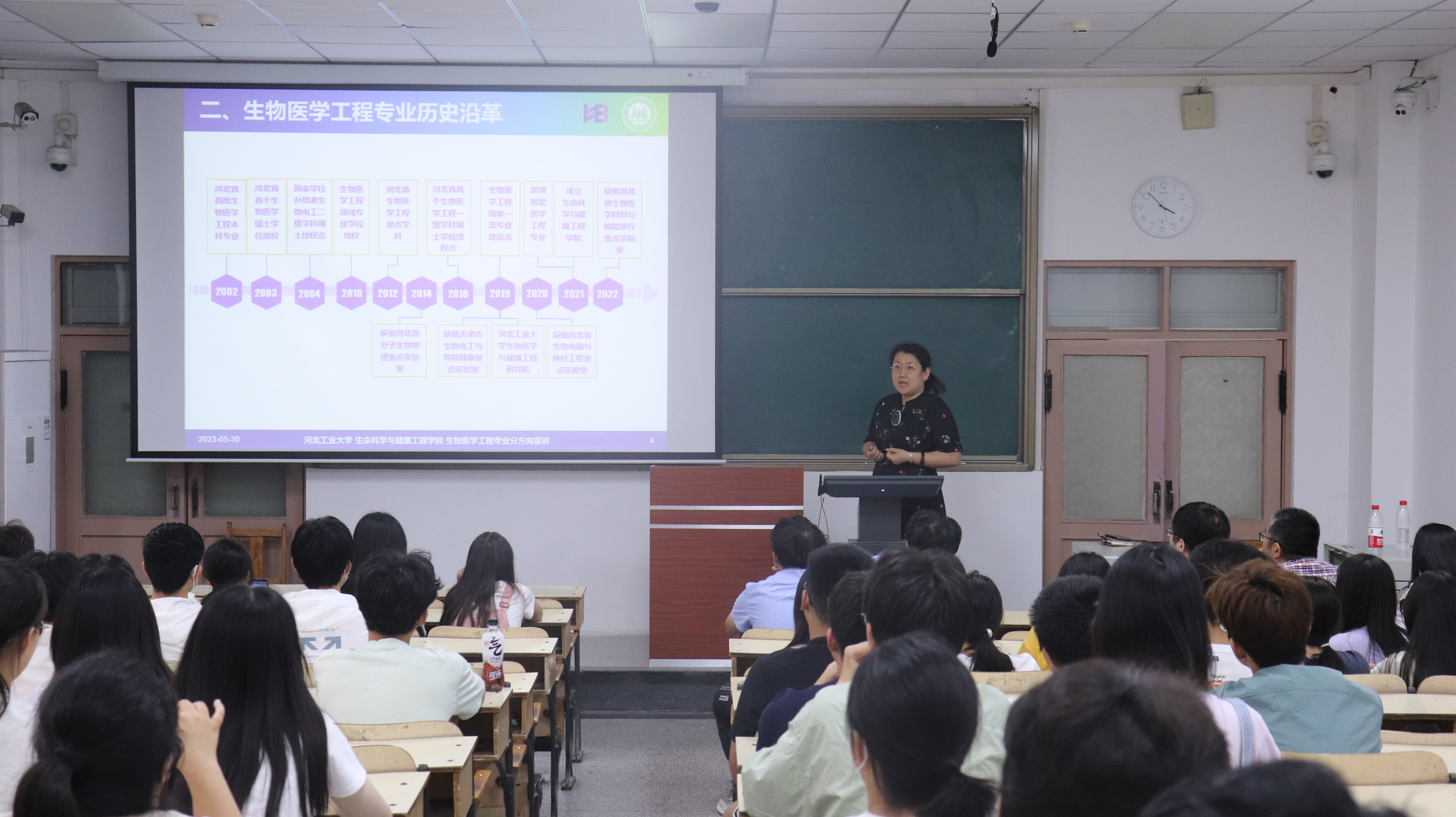 为体现交叉学科优势和地域特色,服务“健康中国”的国家战略和京津冀区域大健康产业发展需求,秉承“工学并举”办学特色,培养面向生命健康领域的新时代专业人才,生物医学工程专业2022级在2023年秋季学期开始分电子信息与仪器方向和生物医学材料与器件方向培养。学院于5月30日下午为2022级全体生物医学工程本科生召开方向宣讲会,生物医学工程系系主任杨硕、医学科学与工程系系主任周欢、医学科学与工程系副系主任王晖参与宣讲,宣讲会由辅导员谭赛丹主持。