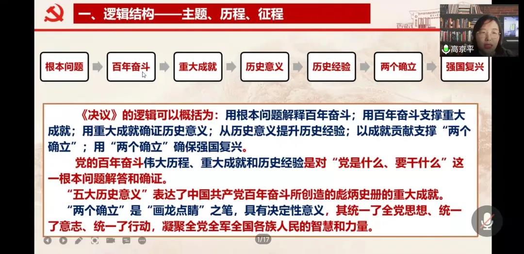 马克思主义学院高京平教授为我院师生做党的十九届六中全会精神专题线上讲座
